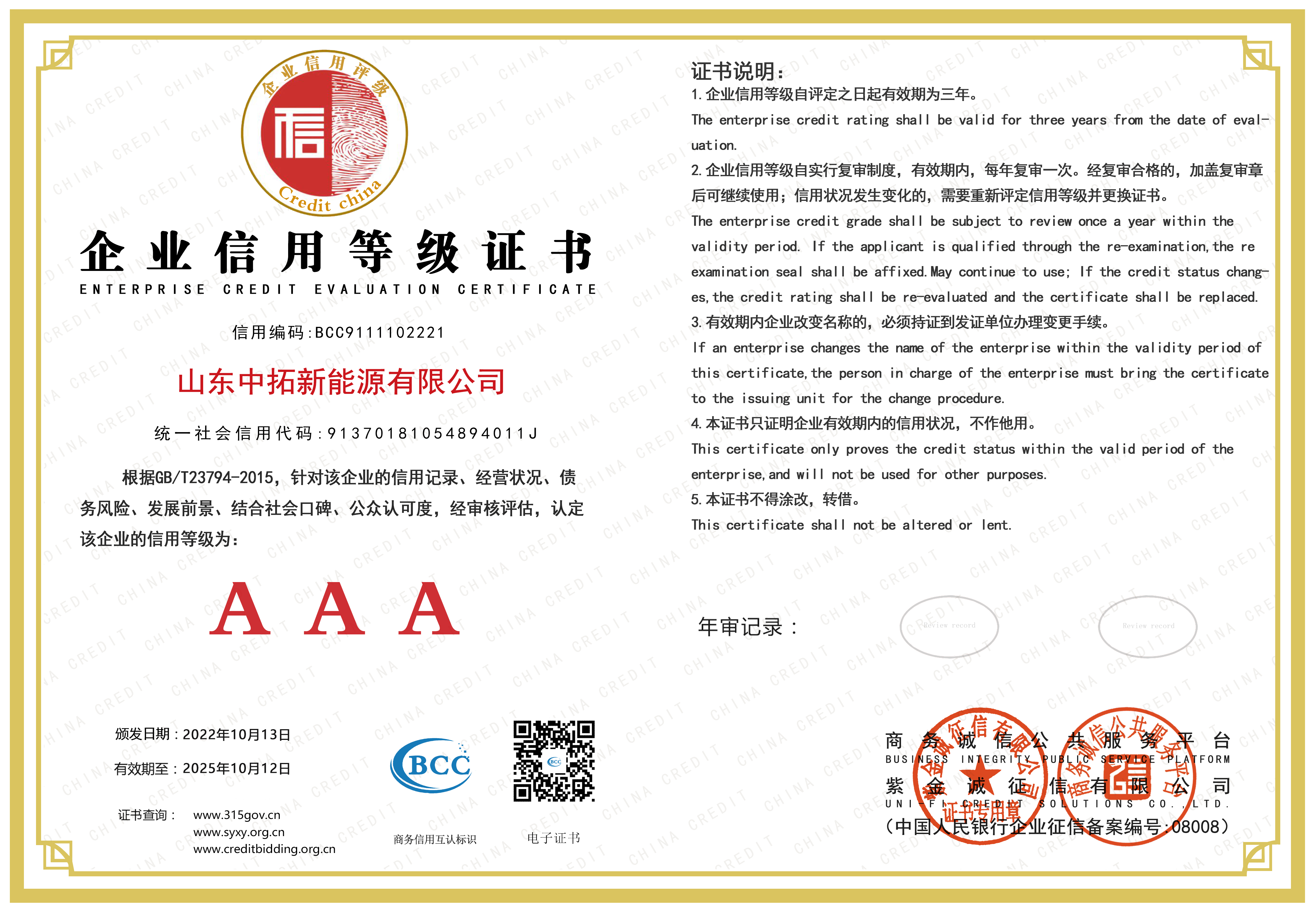 • AAA級企業(yè)信用等級